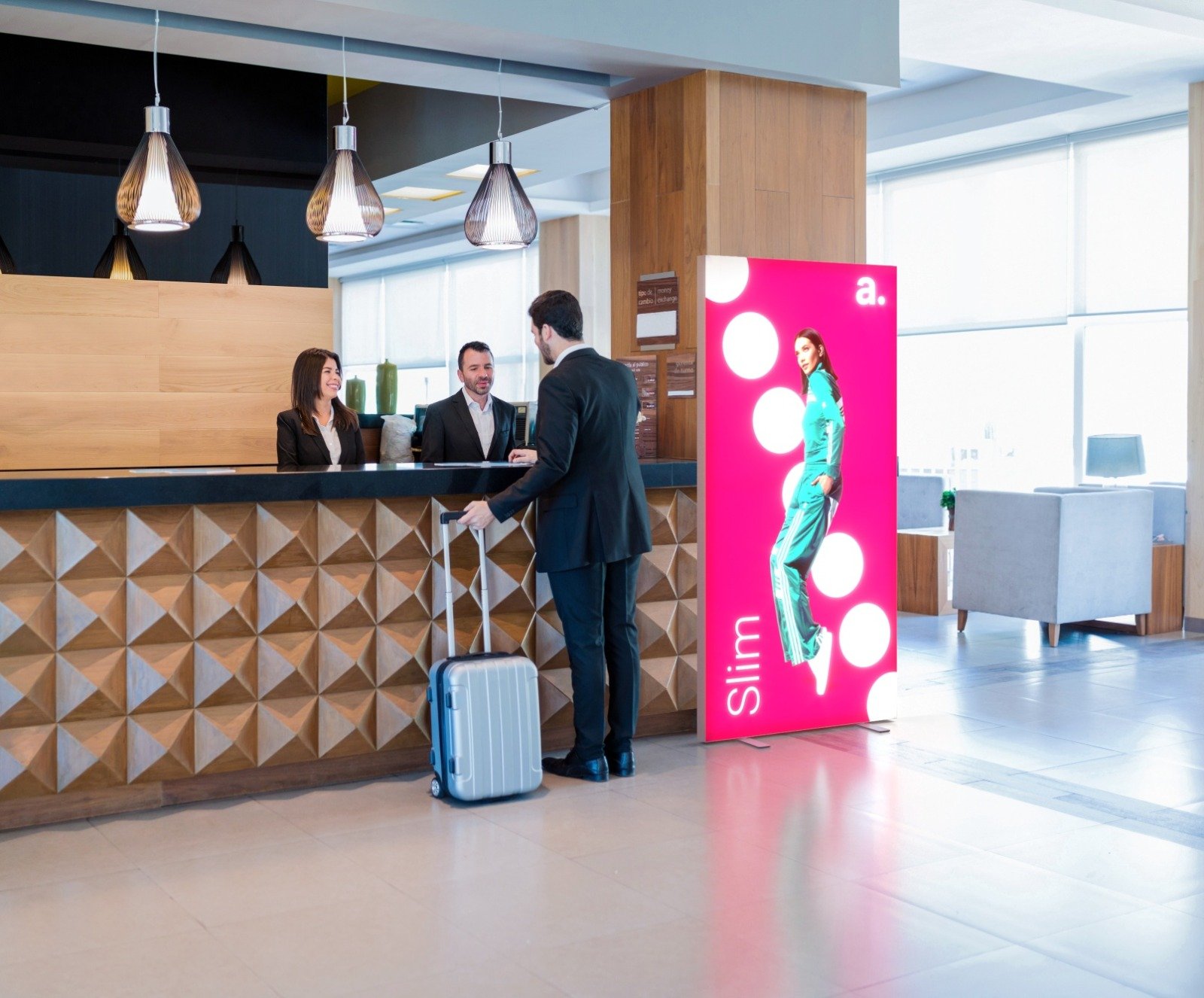 Une borne d’accueil – comme un comptoir promotionnel signé adsystem – peut à la fois servir de point d’information et refléter votre image de marque grâce à une impression personnalisée. C’est là que s’engagent les conversations… qui peuvent mener à des décisions importantes.